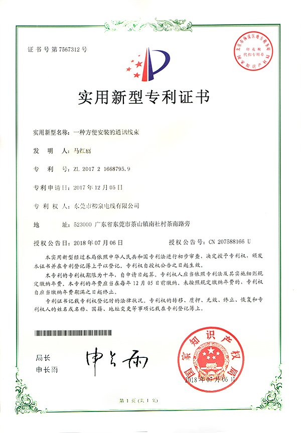 實用新型專利證書